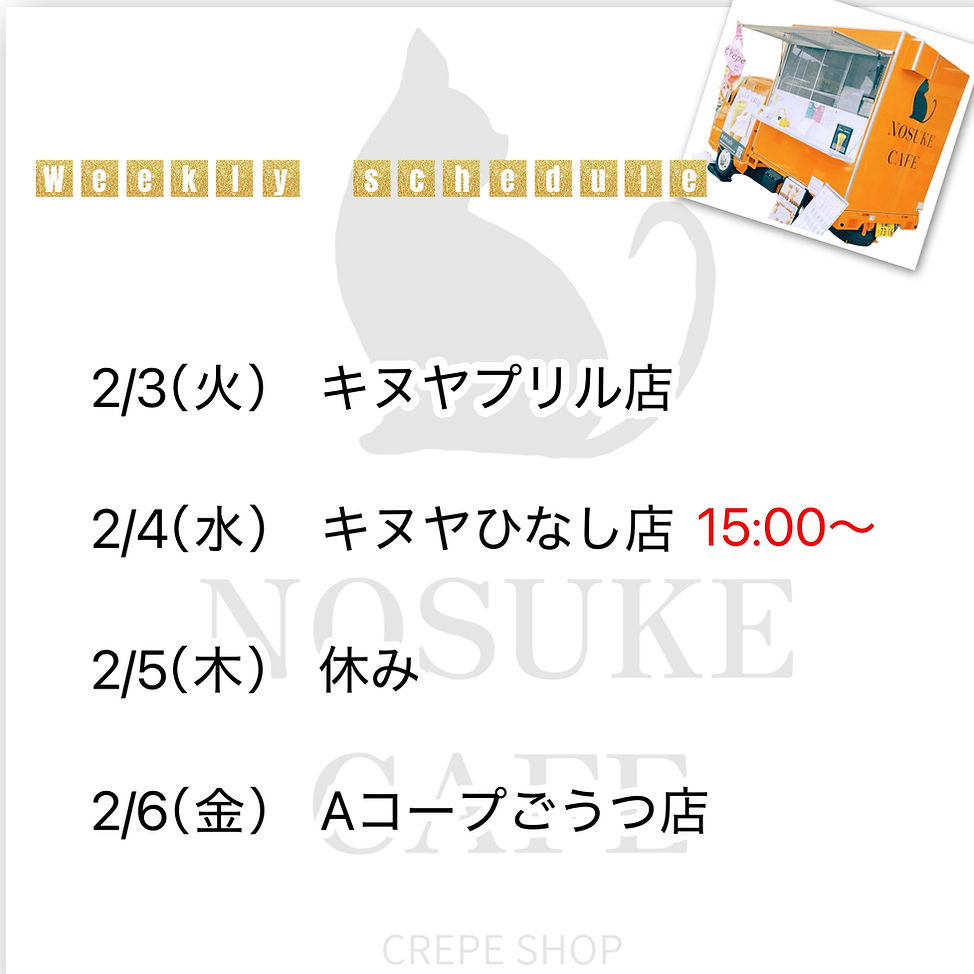 浜田市・江津市を中心に回るキッチンカー クレープショップ『のすけcafe』です。